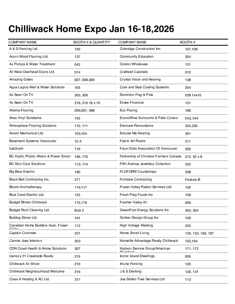 Chilliwack Exhibitor Information